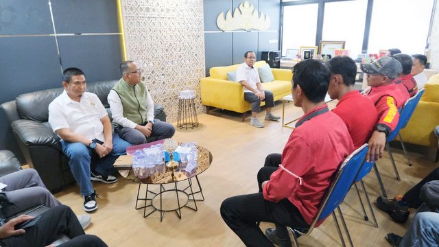 Usai menyerahkan surat aspirasi, Kabag. Sekretariat dan Hukum Agus Faroni menyampaikan terima kasih kepada para karyawan yang membuka ruang untuk diskusi.